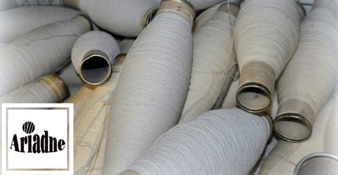 „Surovina“ pro výrobu v klubíčka doputuje do Ariadne v bednách a namotaná na cívkách. Nitě na cívkách se podle výsledné síly příze musí nejdříve spolu „nasdružit“ pod určitým tahem, aby jednotlivé příze byly uloženy vedle sebe bez smyček. Tato první výrobní operace se nazývá jak jinak než sdružování a jejím cílem je vytvořit z několika jednoduchých přízí cívku, na které již budou uloženy nitě do jedné silnější, ale bez zákrutu. Odtud již namotaná příze přichází do stroje číslo dva “ skacího stroje“. Zde se mu předkládá cívka s nasdruženou přízí a stroj kombinací rychlosti posunu materiálu s rychlostí otáčení vřetene vytváří v nasdružené přízi zákrut. Pan Pěnkava mi vysvětlil, že v moderních přádelnách se zákrut nastavuje na digitální stupnici. V Ariadne je to však starším způsobem tj. výměnou a kombinací ozubených kol v převodovce stroje. Skací stroj v Ariadne patří mezi tzv. prstencové skací stroje a seskaná příze se ukládá na papírovou dutinku, které se říká odborně potáč. Na jeden potáč se obvykle uloží asi 0,5 kg seskané příze. Seskáním však výrobní operace zdaleka nekončí. Je nutné zákrut ze skacího stroje stabilizovat tak, aby se zpětně nerozkrucoval, či aby se úplet nešikmil atp. K provedení této operace je třeba vystavit seskanou přízi působení vodní páry o teplotě, která je různá pro různé druhy materiálu. Seskaná příze se na „motáku přaden“ převine na přadena, která se následně vkládají do originálního zařízení, které vyrábí páru a po nastavený čas a v nastavené teplotě ji vhání na přadena, tak by se příze stabilizovala. Přadena se po vychladnutí předkládají tzv. „konvovacímu stroji“, který je stáčí do konví. Konve se poté s obsahem cca 10 kg příze již předkládají „klubkovači “ ke konečnému zpracování do různých velikostí klubek a jejich adjustaci páskami, zabalením a přípravou na cestu ke konečnému zákazníkovi. Uff. Doufám, že Vám tento proces alespoň krapet přiblíží fotografie pod článkem.