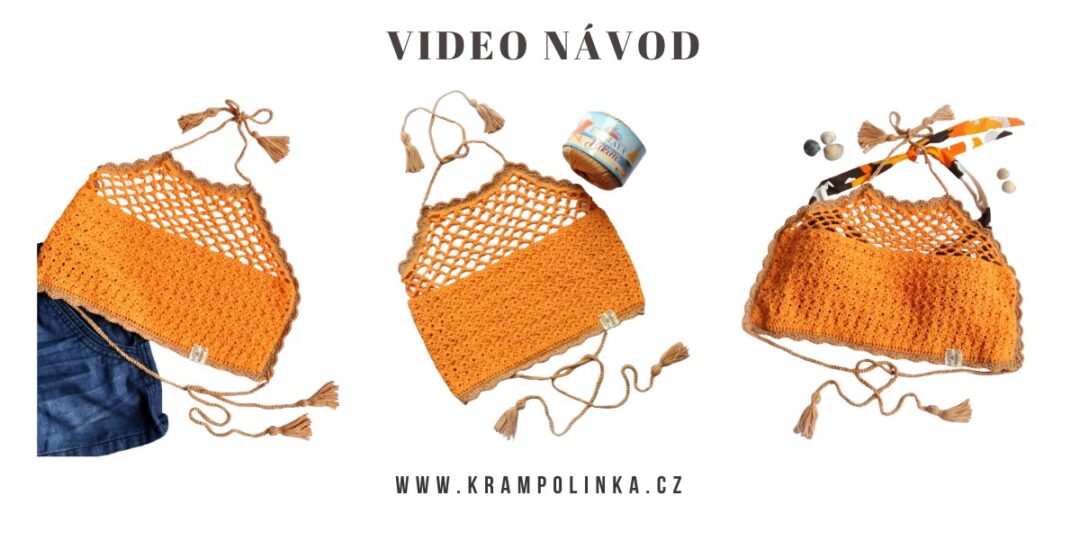 Žádné velké umění. V podstatě se jedná o přední díl, který sahá až ke krku. Zde je jedno praktické zavazování právě za krkem, druhé je pak v oblasti hrudníku. Tento typ oděvu je známý jako CropTop nebo festivalový top. Já mu říkám plavkový, protože můj záměr byl nosit ho na plavky. Zkoušela jsem i na holé tělo, ale se svými decentními rozměry dám přednost nošení na zmíněných plavkách. Návod nemá video, ale věřím, že háčkování zvládnete.