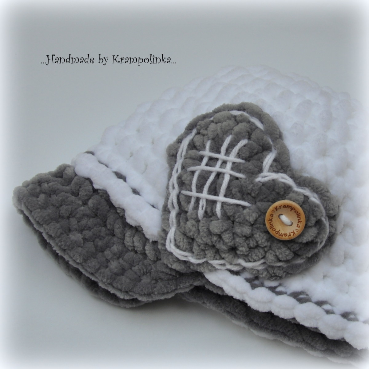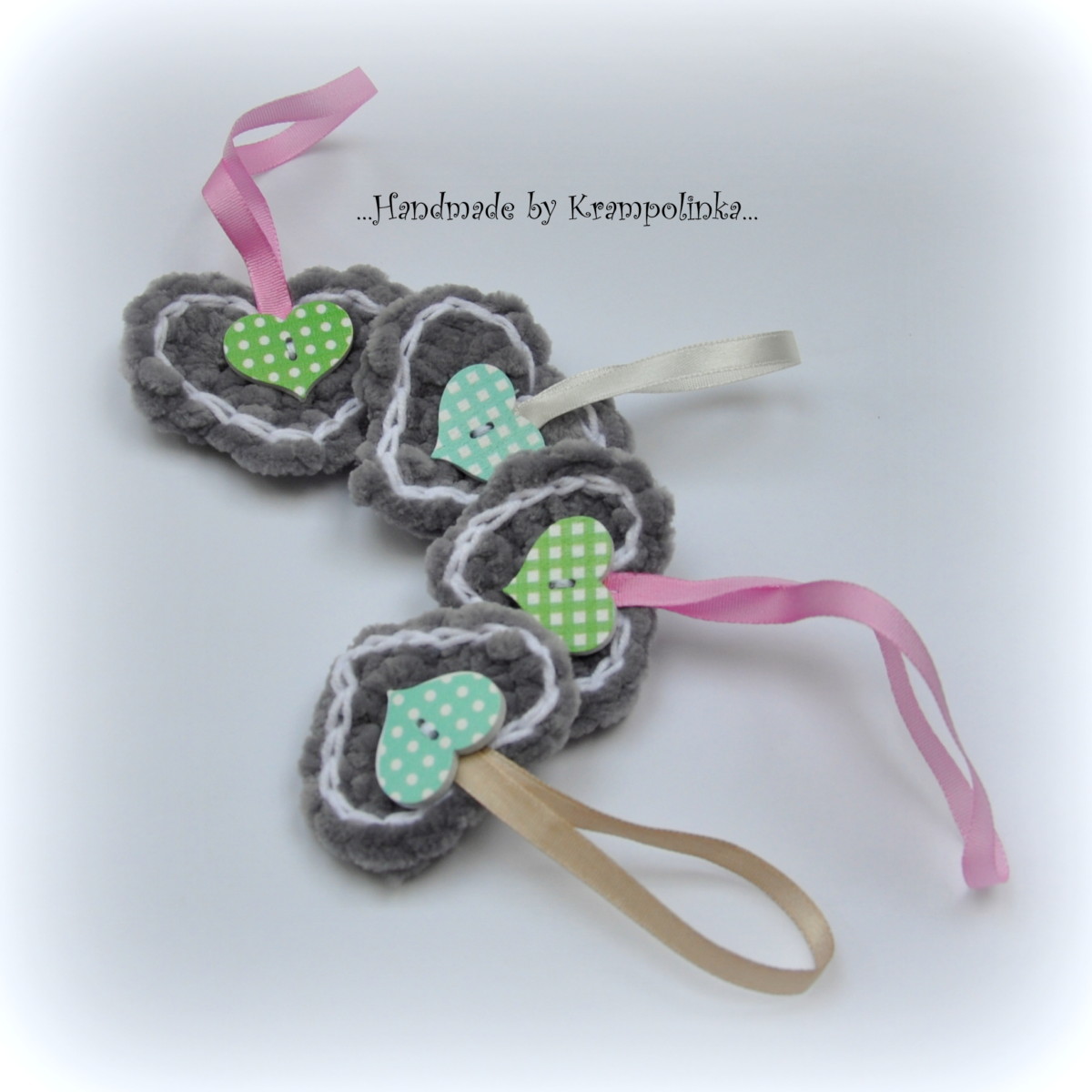 TIP: To alternate the sice of the heart, use different hook sizes (e.g. I used hook 4 mm for the small grey heart).