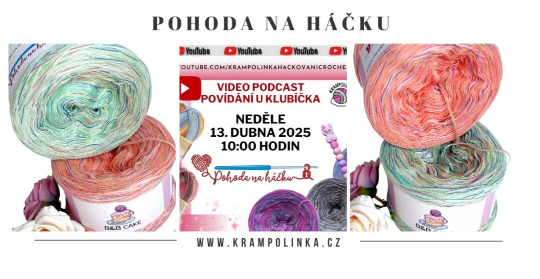 V nedělním podcastu jsme si představili květnovou kolekci duhových klubíček BB CAKE, které jsou k dostání pouze na e-shopu Pohoda na háčku. Paní Blanka, která je majitelkou i kamenné prodejny v Táboře, pro vás vyrábí pětinitková klubíčka, ze kterých si můžete vyrobit od šátku, šály, svetříku či topu až po deku do kočárku. Navíc každé klubíčko BB CAKE obsahuje skrytý citát. Stačí se k němu proháčkovat, klubíčko a citát vyfotit a označit takto #tajemstvivklubicku a označit @pohodanahacku na sociálních sítích FB a Instagram a můžete se zapojit do neobvyklé SOUTĚŽE o klubíčko na přání.