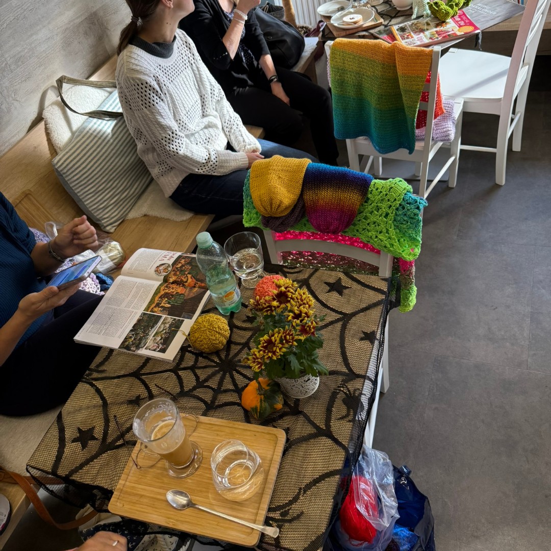 Každý účastník si donese vlastní háčkování nebo pletení, případně cokoliv zajímavého. Dáme si kafíčko, chlubíme se, inspirujeme se a povídáme si o háčkování, pletení a klubíčcích. Sezóna začíná přát ručním pracem, takže pokud máte chuť zažít tvořivou atmosféru, deváté setkání proběhne v sobotu 29. listopadu 2025 od 10:00 do 12:00 hodin POZOR ZMĚNA! v kavárně LORENZCafé v Kroměříži (Vejvanovského 465, vstup od Podzámecké zahrady). Co bylo skvělé na osmém setkání? Že se pletlo i háčkovalo. Donesly jste spoustu hotových krásných výrobků, které jsme si vyzkoušely. Dcera dostala fantastického háčkovaného Labubu – strašně moc děkujeme! Dokonce dorazila paní až ze severní Moravy a dostala jsem hrníček – strašně moc děkuji! Listovalo se časopisy, povídala jsem o galanterii v Estonsku, zkrátka sobota jako víno!