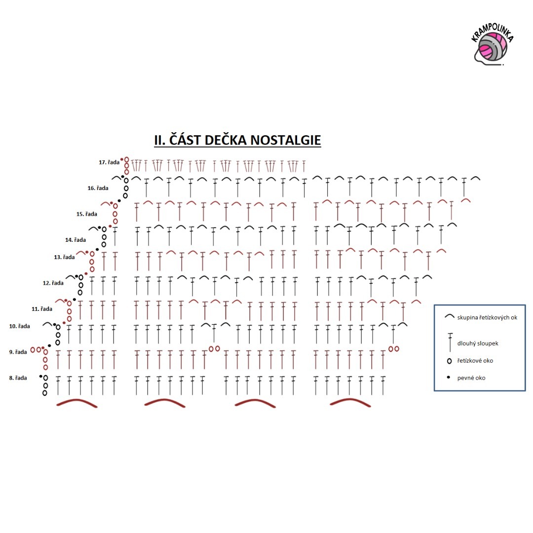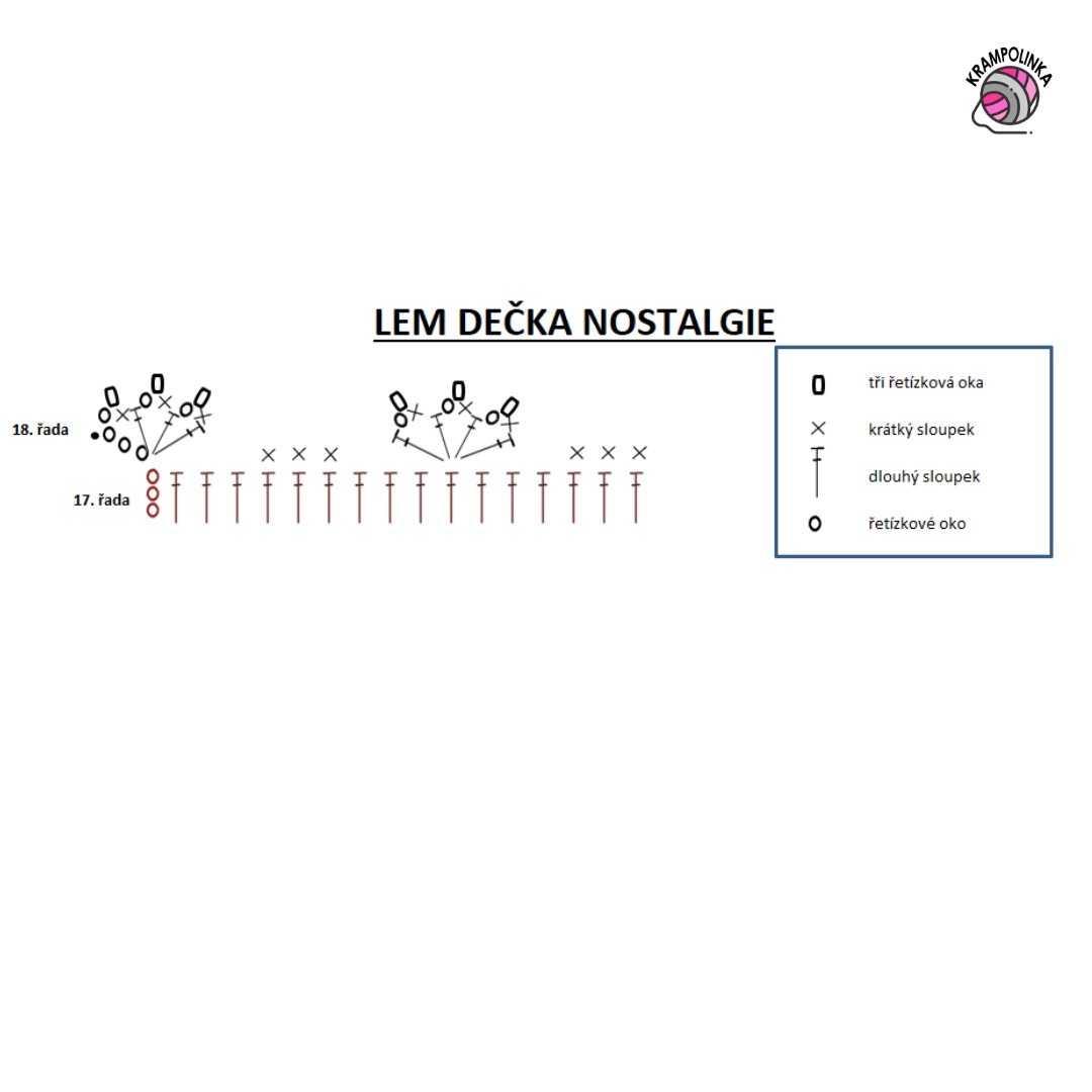 Ať se vám Dečka Nostalgie podaří a dělá Vám radost. Pokud máte chuť inspirovat ostatní nebo sdílet své zkušenosti s háčkováním či stylingem dečky, budu moc ráda za vaše fotografie. Fotečky můžete vkládat do FB skupinky Krampolinka. Na Instagramu pro pohodlné vyhledávání prosím používejte tag #deckanostalgie. Pokud mne označíte u výrobků dle mých návodů, můžu je přesdílet v Instastories pro inspiraci ostatním.