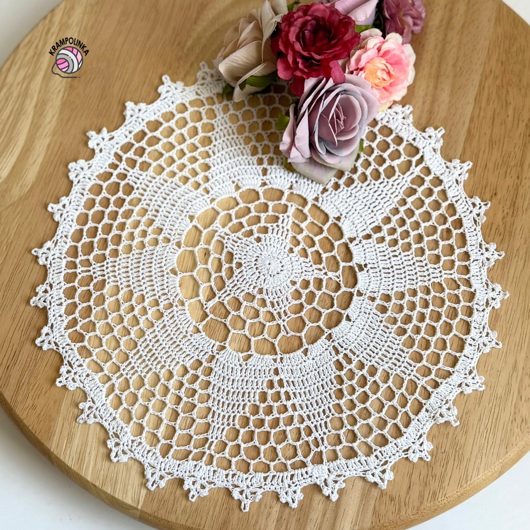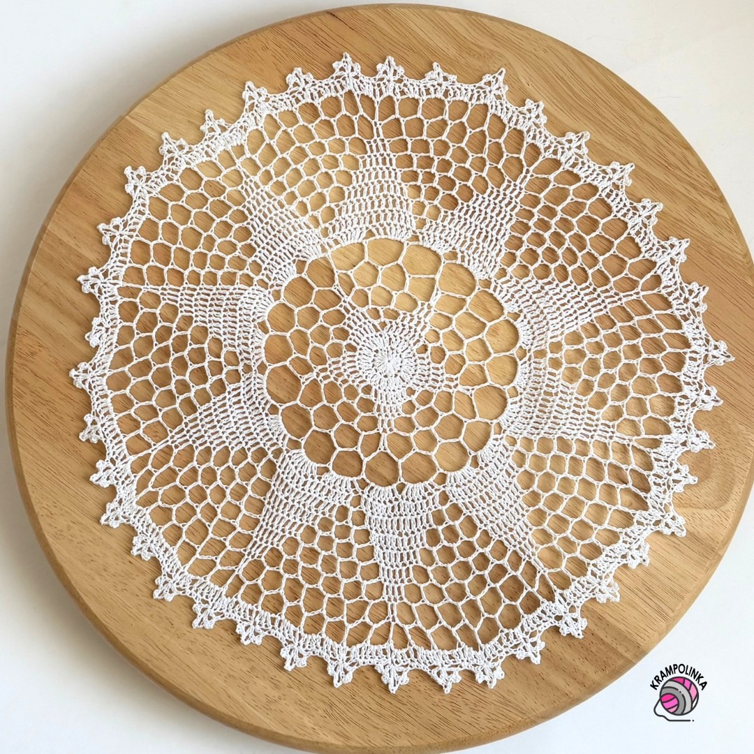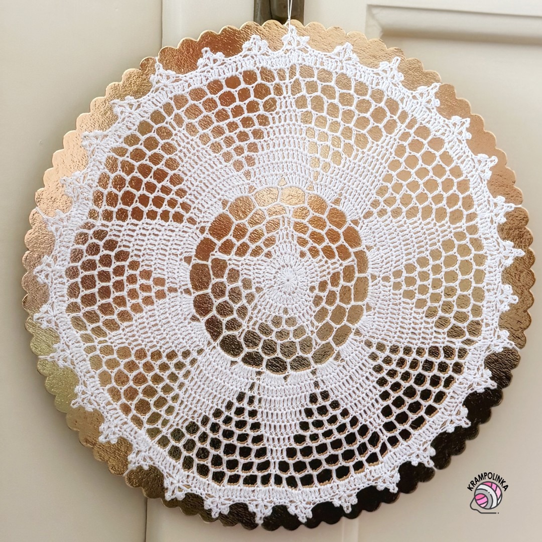 Háčkování začínáme magickým kroužkem a pokračujeme stále po lícové straně. Dečka se skládá z centrálního motivu ve tvaru pěticípé hvězdičky, který se postupně rozvíjí do deseticípé květiny. Barevnou kombinací můžete snadno ovlivnit výsledný vzhled – například kombinace hnědé a žluté vytvoří efekt slunečnice a letního dekoru, zatímco bílá varianta působí elegantně, nadčasově a bude na stole krásná po celý rok. Tento motiv je velmi univerzální a skvěle se hodí také jako základ pro mandalu nebo lapač snů.