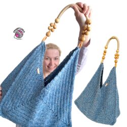 Zapošijeme volné konce. Na bok tašky přišijeme ucha tašky. Dozdobíme dřevěným nebo kovovým štítkem.