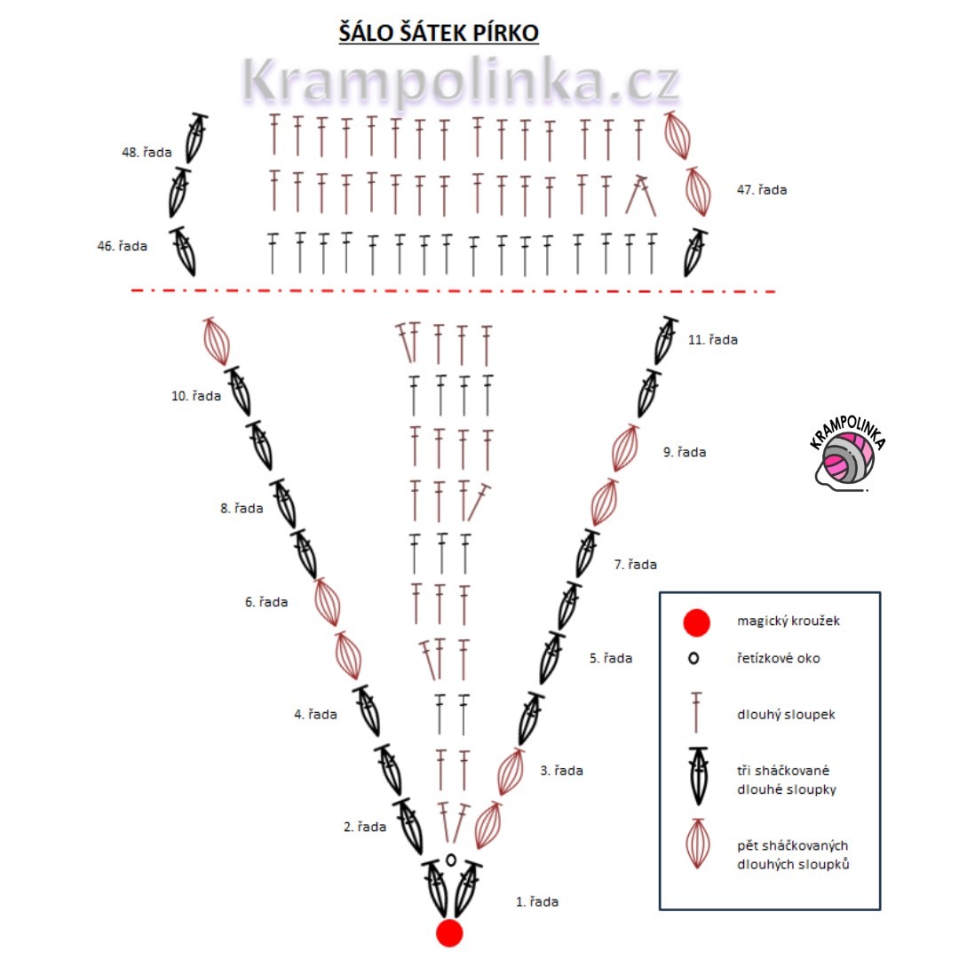- Nákres vzoru šálo šátek Pírko