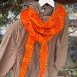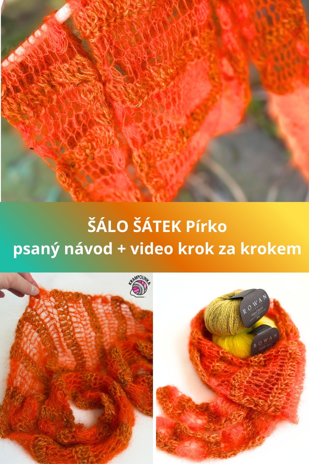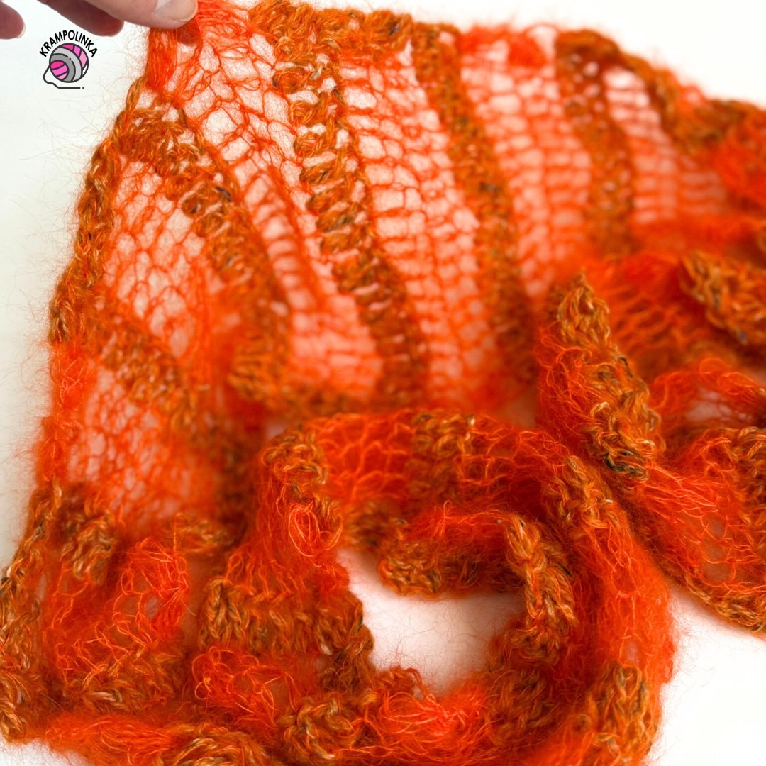 Název pro tento šálošátek jste vymysleli vy sami. Padlo několik krásných návrhů – Aperol, Ohnivák, Plamínek, Pavučinka nebo Pírko. Nejčastěji se ale opakovalo slovo Pírko, a proto jsem se rozhodla šálošátek pojmenovat právě tak. Název krásně vystihuje jeho lehkost, jemnost i vzdušný charakter materiálu.