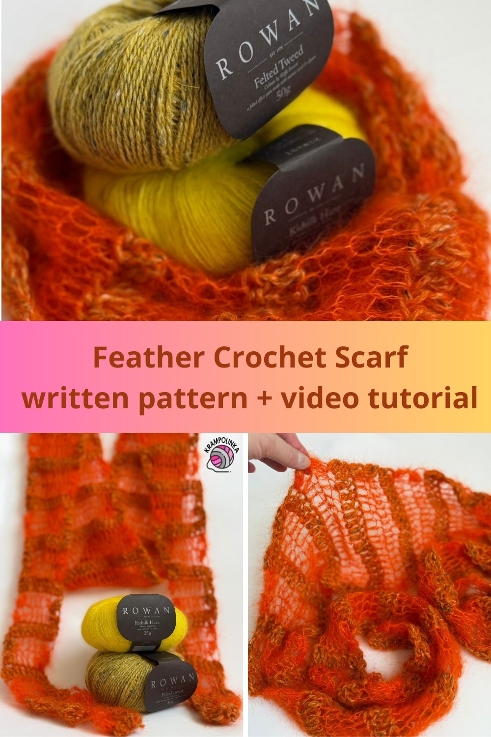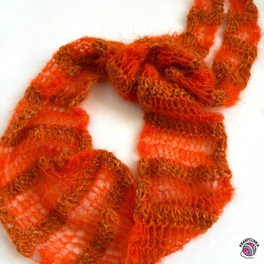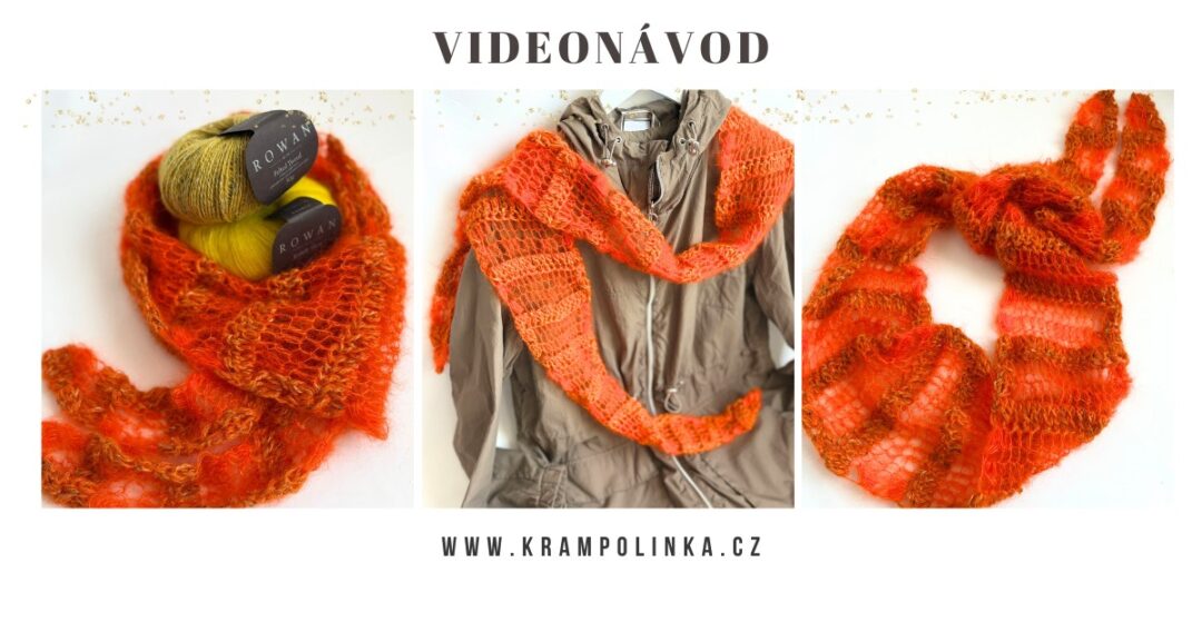 Pro letošní sezónu jsem si zamilovala kombinaci přízí Rowan Felted Tweed a Rowan Kidsilk Haze. Obě vlákna můžete spojit dohromady a vytvořit tak nádhernou strukturu s jemným chloupkem. Pokud rádi experimentujete, můžete zkusit jinou variantu – háčkovat jednu řadu ze dvou vláken dohromady a další dvě řady pouze z jemné a tenké příze Kidsilk Haze, ideálně větším háčkem. Vznikne tak opravdu krásný, vzdušný efekt, který působí velmi lehce a elegantně. Z tohoto vzoru pro vás chystám také vestu, ale protože mi zůstalo klubíčko v nádherné ohnivě oranžové barvě, připravila jsem pro úplné začátečníky jednoduchý video návod na jemný šálošátek.