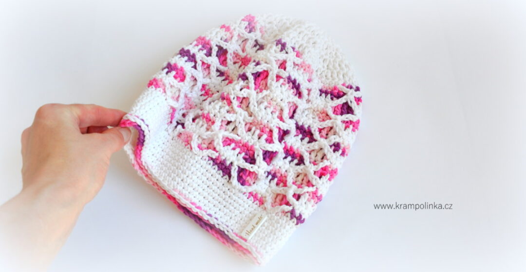 Co se týče homelesky, mám pro Vás dobrou a špatnou zprávu. Dobrá zpráva je, že ve videu naleznete návod na homelesku na obvod 45-46 cm a zde v článku i psaný návod na dospělou velikost obvod 56 cm. Ta špatná zpráva je, že čepička má vzor, který se opakuje na 7 očkách, takže pokud utahujete stejně jako já, tak velikosti čepice skáčou po cca 5-ti cm. Takže osm sloupců je velikost 45-46 cm, devět sloupců bude cca 50 cm a deset sloupců je 56 cm.