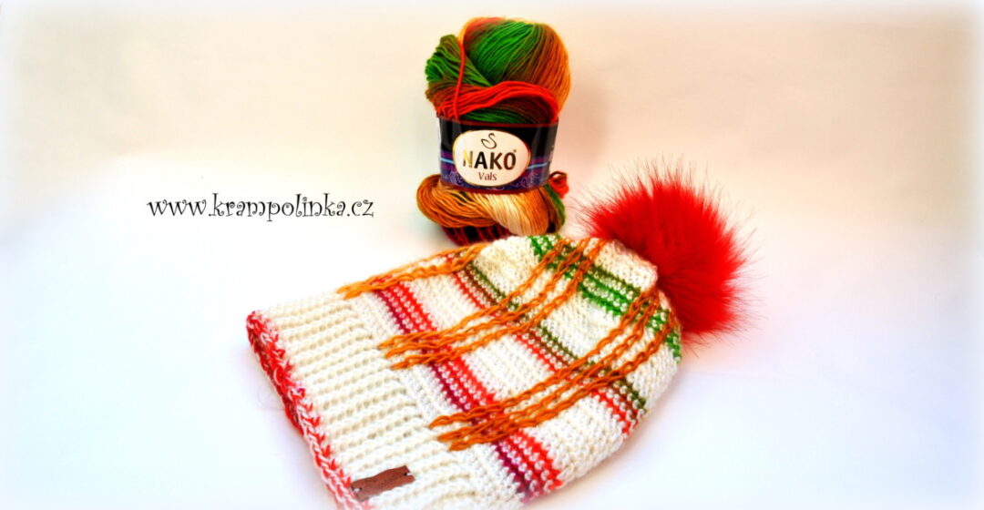 Příze: Nako Vals (na obrázku barvy 86842 a 208), spotřeba klubíčko bílé, kousek melírové, zakoupíte na www.primaprize.cz