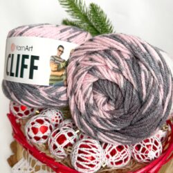 NOVINKA YarnArt CLIFF je samovzorovací příze složená z 20 % vlny a 80 % akrylu o hmotnosti 150 gramů a návinem 245 metrů. Zaujme samovzorovacím efektem. Ideální je pro háčkované šály, tunely, čepice nebo jednoduché svetříky. Doporučuji použít vzor mech (ŘO a KS) nebo skoromech (2ŘO a KS) větším háčkem, který zvýrazní samovzorování. Přízi pořídíte zde. Mrkněte na video návod na háčkovaný svetřík Šestka jako inspiraci pro háčkování z příze Cliff.
