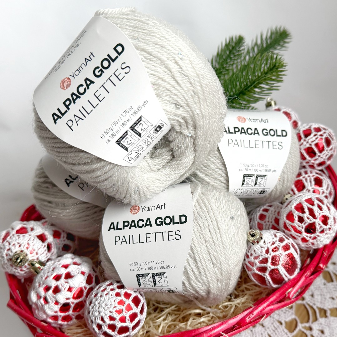 YarnArt ALPACA GOLD, NOVINKA, přináší luxusní nádech díky příměsi 20 % alpaky, 5 % polyesteru a 75 % akrylu. Navíc obsahuje drobné pajetky, které dodají výrobkům jemný třpyt a slavnostní vzhled. Toto klubíčko o hmotnosti 50 gramů a návinu 180 metrů je jako stvořené pro háčkované čepice, šátky, tunely nebo elegantní svetříky. Hřejivost a decentní lesk pajetek dělají z této příze ideální volbu pro zimní a společenské doplňky. Přízi pořídíte zde.