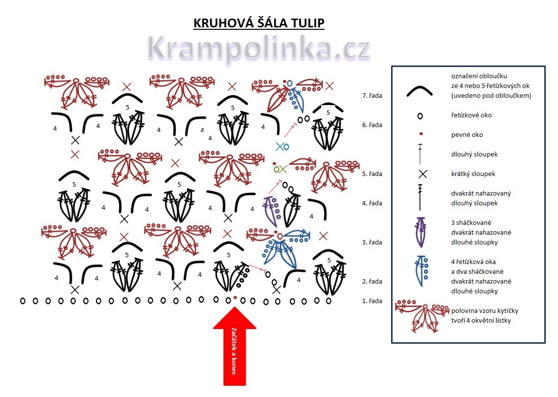 - Nákres vzoru kruhová šála Tulip