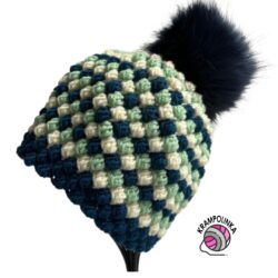 - Co se týče kulichu, tentokrát budeme háčkovat od základní placky. Hned od počátku budeme střídat tři barvy a jakmile doháčkujeme na potřebný rozměr, tak přejdeme na bublinkový vzor. Díky střídání tří barev vznikne krásný efekt. Navíc bublinkový vzor v kombinaci s materiálem krásně zahřeje, takže se kulíšek hodí perfektně na zimní sezónu.