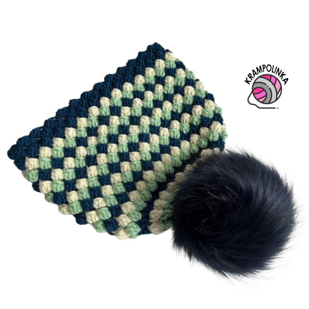 - Co se týče kulichu, tentokrát budeme háčkovat od základní placky. Hned od počátku budeme střídat tři barvy a jakmile doháčkujeme na potřebný rozměr, tak přejdeme na bublinkový vzor. Díky střídání tří barev vznikne krásný efekt. Navíc bublinkový vzor v kombinaci s materiálem krásně zahřeje, takže se kulíšek hodí perfektně na zimní sezónu.