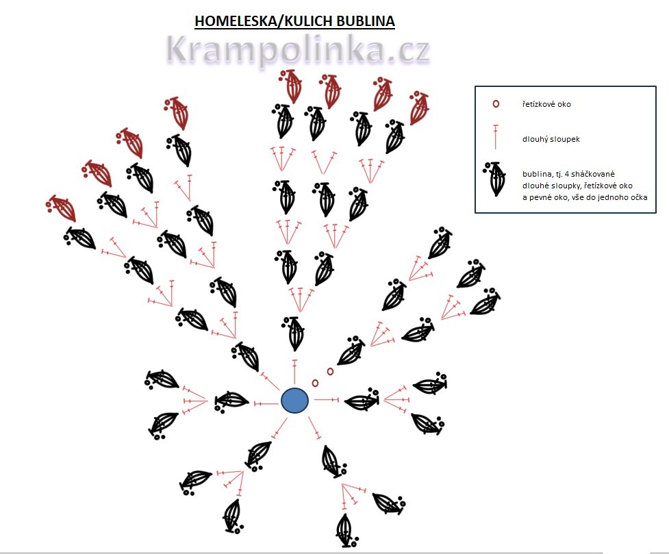 bublina – kterou tvoří 4DS – čtyři sháčkované dlouhé sloupky, ŘO a PO do jednoho očka