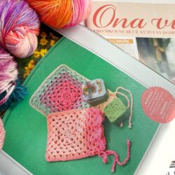 - dva vzory na háčkované kloboučky z příze Scarlet, háčkovaná neobvyklá taška ze zbytků, háčkovaný pytlíček na voňavé mýdlo do prádelníku;