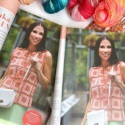 - parádní háčkovaná vesta ze čtverců s “V” výstřihem, upcyklování trička s háčkovanou rukávovou vsadkou – hitovka letošního léta;