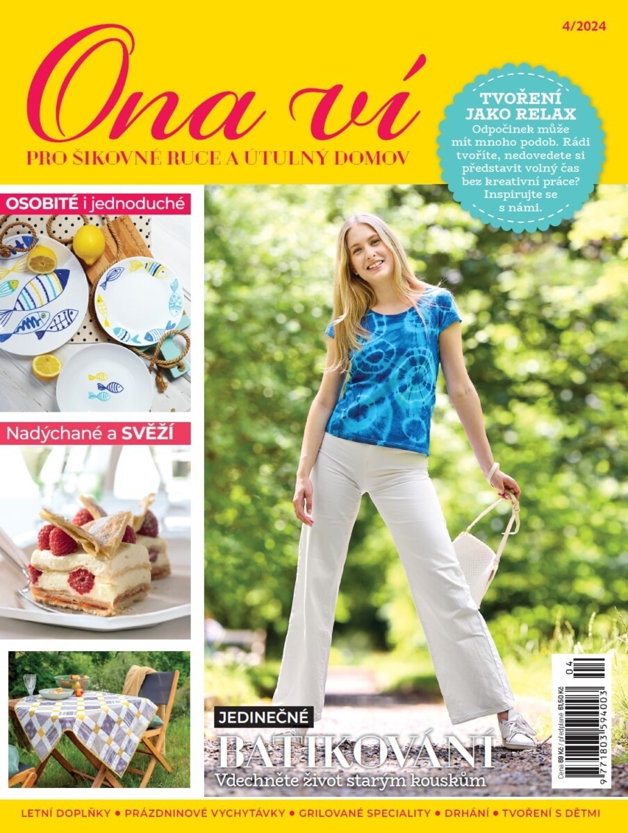 Aktuální číslo v prodeji na stáncích od nebo s dopravou zadarmo na www.casopisyprovas.cz Předplatné časopisu Ona Ví pořídíte zde Tištěný výtisk v novinovém stánku nebo třeba na poště seženete již od června 2024. Více tipů a ukázka z časopisu na www.ona-vi.cz, na FB Magazín Ona Ví, případně na Instagramu Ona.vi.cz.