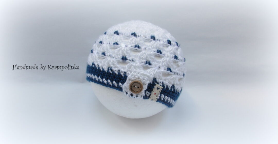 Příze: KARTOPU Lemon námořnická modř a bílá (Akryl, 100g/250m), zakoupeno na www.tureckeprize.cz, ale můžete nahradit Himalaya Everyday, zakoupíte na www.vlnovka-prize.cz
