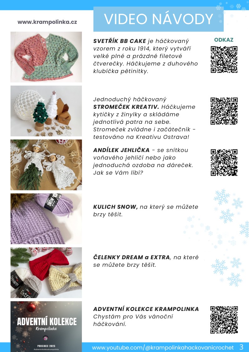 - Přehled video návodů s QR kódy za období srpen – listopad a výhled na prosinec, se kterým přichází Adventní kolekce Krampolinka 2025;