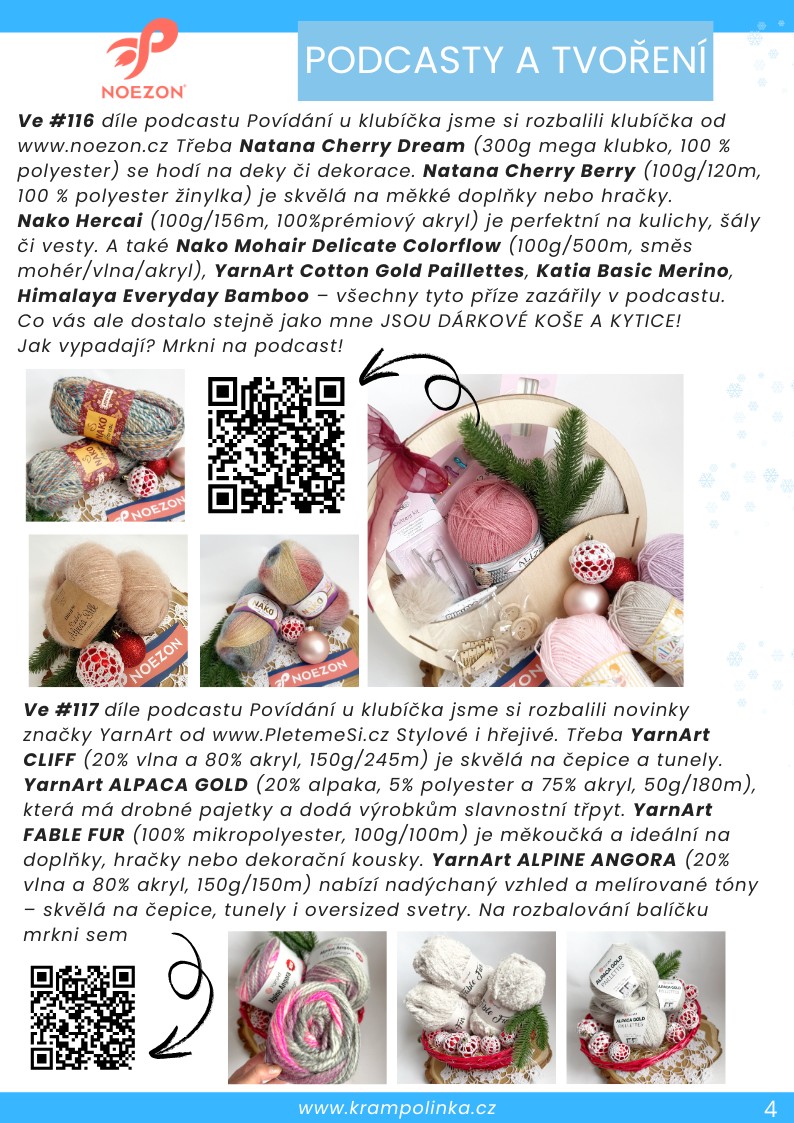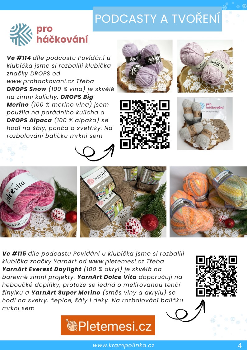 Vánoce jsou za dveřmi a s nimi přichází nejkrásnější období roku – čas světýlek, horkého čaje, klubíček v košíku a háčku v ruce. Adventní čas je jako stvořený pro chvíle klidu a tvoření. Právě proto jsem pro vás připravila adventní vydání newsletteru Krampolinka, ve kterém najdete inspiraci, tipy, návody i radost z háčkování krásně pohromadě.