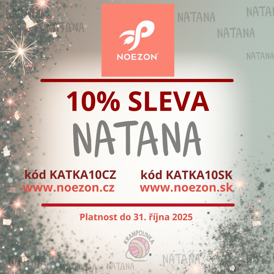 Na značku NATANA můžete do konce října použít slevové kódy KATKA10CZ a KATKA10SK a získáte 10% slevu na všechny příze této značky. Hurá na nákup.