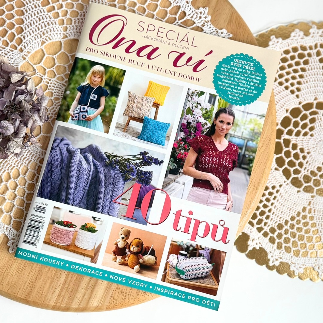 Tištěný výtisk Ona Ví Speciál Háčkování a pletení zakoupíte od 26. března 2026 jednoduše online na www.casopisyprovas.cz. Poštovné po České republice máte zdarma. Časopis můžete zakoupit i ve své oblíbené trafice nebo na poště. Víte, že SPECIÁL vychází jen dvakrát za rok? Každý je pak věnovaný buď speciální technice nebo určitému tématu. Stále lze zakoupit i starší výtisky.