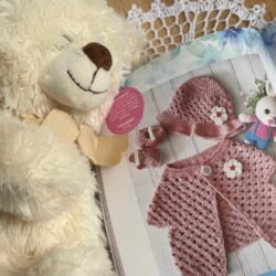 - háčkovaná sada pro miminko – klobouček, svetřík i capáčky,