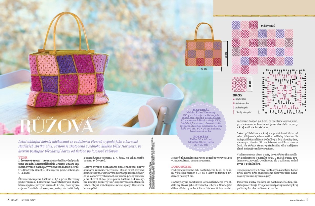 Tašky, kabelky, síťovky, psaníčka či baťůžky. Třicet návodů a postupů na háčkování, pletení, drhání i šití na Vás čeká v novém Ona Ví Speciál Tašky.