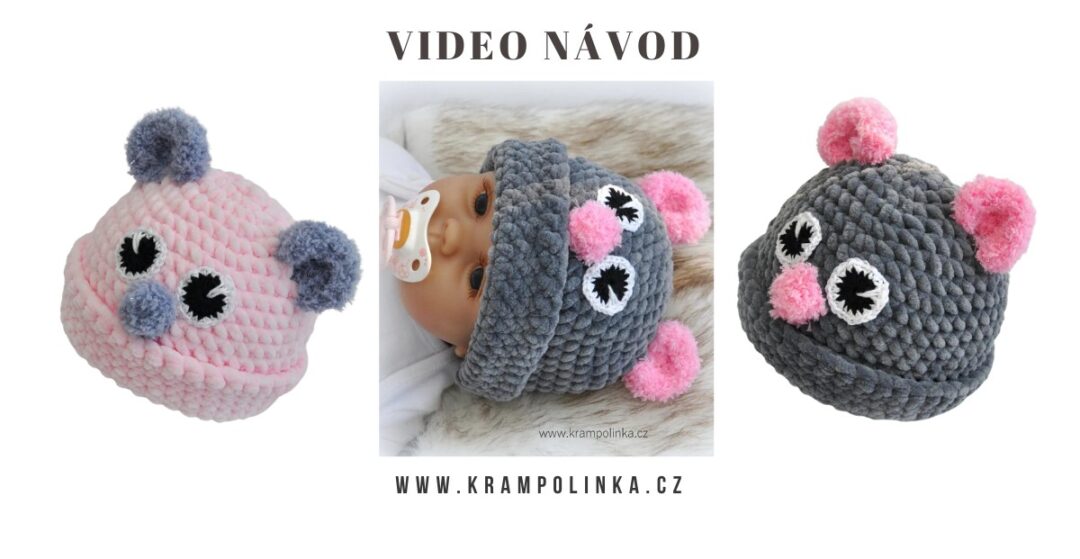 Co se střihu týče, zvolila jsem postupné přidávání, abych se vyvarovala tvaru ála hrnec. Návod je ale spočítán na mé vlastní utahování. Pokud se Vám začne projekt v některé fázi vlnit, je potřeba s přidáváním zvolnit nebo zvolit menší háček a přidat pár sloupků. Čepička je dělaná delší tak, aby se dala ohrnout. Aby to hned nepovolilo, u konce se mění velikost háčku a poslední řada je opět háčkována dvojmo. Čepičku jsem “dozdobila” oušky, které se háčkují přímo na čepici. Čumák je vlastně jedna velká pecička a delší konec jsem využila na “výraz”. Pak stačí uháčkovat jen dvě očka a medvídek je na světě.
