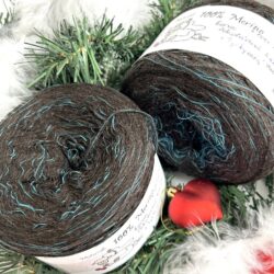 Dále jsme si ukázali duhová klubíčka HUNOR MERINO, třínitky 100% merina s hedvábnou tyrkysovou nitkou. Klubíčko má cca 208g/cca 1000m a z jednoho vyrobíte teplý šátek, ze dvou velký šátek nebo svetřík. Příze je opět celoroční. Na léto volíme vzdušné krajkové vzory, na zimu hutnější. Díky hedvábí drží výrobky krásně tvar. Hunor Merino pořídíte zde.