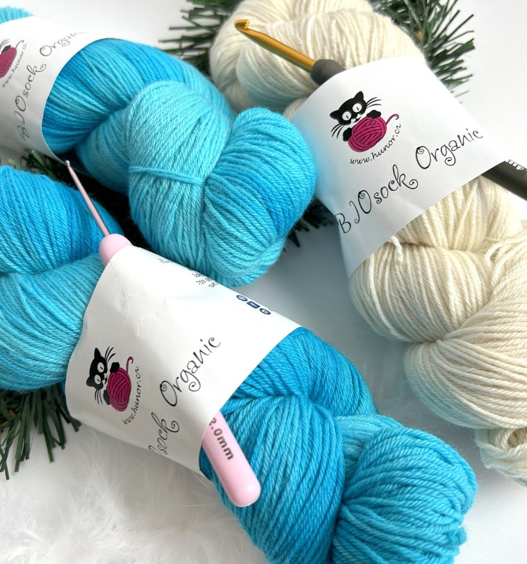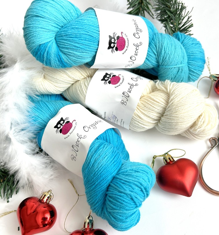 Tak především jedno přírodní a dvě ručně barvená přadena BIOSOCK, ze které jsme vloni tvořili tunel Biosock, video návod zde. Dále si můžete uháčkovat rukavice palčáky Biosock podle video návodu zde. Přadeno má 100g/400m a jedná se o směs 75% merino a 25% rozložitelný nylon. V podstatě se jedná o ponožkovou přízi, kterou ale můžeme využít celoročně na cokoliv od ponožek, sukýnek až po vzdušný krajkový pléd na chladné letní dny. Materiálem i sílou se jedná o úžasný materiál. Biosock pořídíte zde.