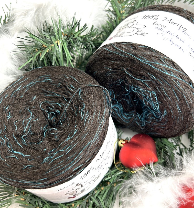 Dále jsme si ukázali duhová klubíčka HUNOR MERINO, třínitky 100% merina s hedvábnou tyrkysovou nitkou. Klubíčko má cca 208g/cca 1000m a z jednoho vyrobíte teplý šátek, ze dvou velký šátek nebo svetřík. Příze je opět celoroční. Na léto volíme vzdušné krajkové vzory, na zimu hutnější. Díky hedvábí drží výrobky krásně tvar. Hunor Merino pořídíte zde.
