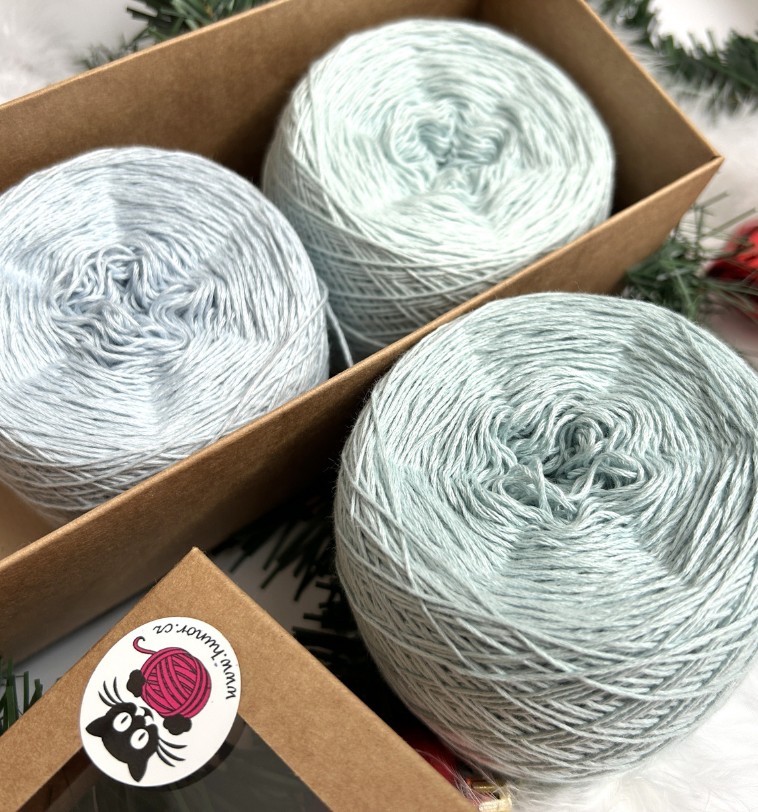 V krabici na nás čekala i malá krabička HUNOR SAHELL SET se třemi 100g klubíčky ve složení 90% bavlna a 10% kašmír. Vlákno je seskané, takže tuto variantu doporučuji i začátečníkům. Vzácná kombinace bavlny a kašmíru je opět celoroční záležitost. Dohromady krabička obsahuje 300g/1500 metrů a uháčkujete si krásný letní topík nebo tuniku. Sahell pořídíte zde.