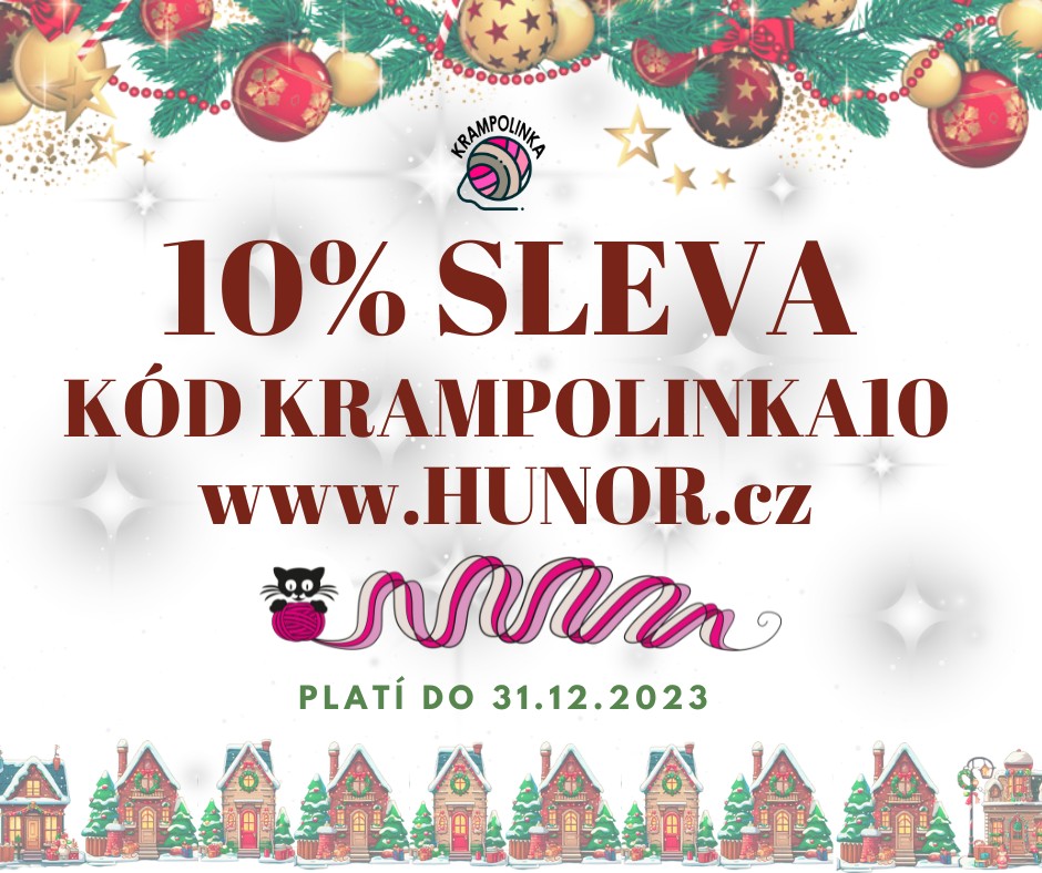 Balíček s klubíčky Hunor jsem si odvezla od paní Lucie z Kreativu. Obsah je zimo jarně laděný, takže pokud už máte hotové kulichy a svetry, je čas se pomalu poohlížet po jarních přízích. Pro nákup Vás určitě potěší 10% SLEVA. Stačí zadat kód KRAMPOLINKA10 a do konce prosince 2023 můžete nakupovat, co hrdlo ráčí. Sleva se nevzathuje na akci VÁNOČNÍ PŘÁNÍ.