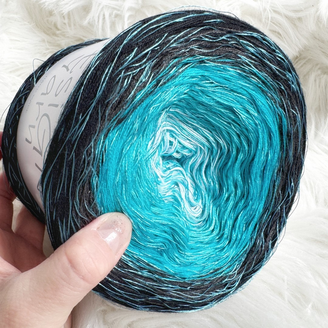 Letos jsem si nedala mnoho předsevzetí, ale jedno mám. Koupit si každý měsíc jedno klubíčko od paní Ivanky. Je únor a zatím předsevzetí dodržuji. Ale nejdříve ke klubíčku, které jsem si objednala z barev ze vzorníku Hravá klubka (doporučuji). Seděla jsem totiž ve Zlíně v kavárně a koukla do protější výlohy v patře. Na několika figurínách tam měli různé modely v krásných tyrkysových odstínech. V kombinaci s tmavým pozadím mne barevná kombinace doslova uchvátila. Díky vzorníku jsem si mohla vybrat přesně tu barvičku, kterou jsem si vysnila a vzniklo klubíčko na přání s názvem MURIWAI. Muriwai je pláž na Novém Zélandu, kde se potkává černý písek s tyrkysovým mořem, proto ten neobvyklý název. Moje klubíčko je v moderních tónech tyrkysové, černé (třínitka bavlna/akryl) a s lesklou viskózovou nitkou.