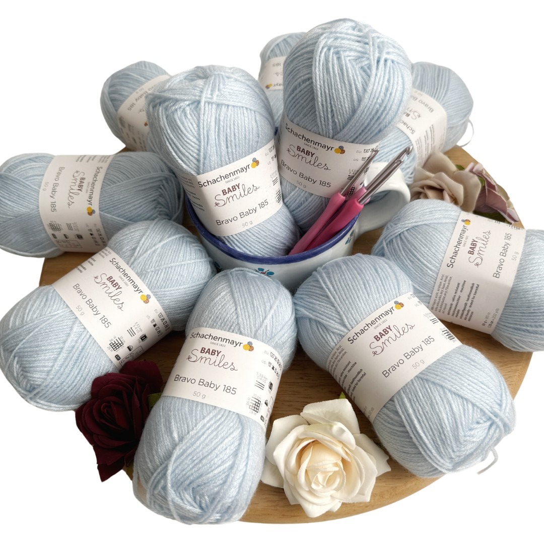 Schachenmayr Baby Smiles Bravo Baby 185, barva 1055 bledě modrá. Klubíčko má 50g a 185m. Jedná se o kvalitní 100% akryl, měkoučký a nadýchaný. Hodí se na lehký podzimní svetřík, deku do kočárku, podzimní čepičky, tunely, šály či plédy. Baby Smiles Bravo Baby má krásný výběr v barvách, včetně efektních vzorování. Současně má příznivou cenu. Více barev si můžete prohlédnout zde