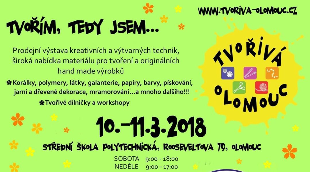 Máte cestu do Olomouce? Je čas si ji naplánovat na správný termín. Ve dnech 10.-11.3.2018 bude v Olomouci probíhat prodejní výstava s názvem “Tvořím, tedy jsem”