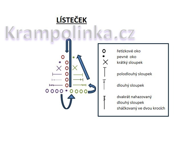 Uháčkujeme stejný lístek s “kudrlinkou” ještě jednou.