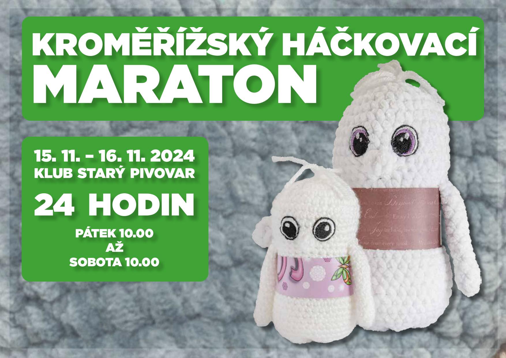 Poprvé se háčkovací maraton konal vloni v Kroměříži. Cílem bylo, aby háčky kmitaly celých 24 hodin bez přestání. Háčkovalo se po skupinkách v časových blocích, ale některé neuvěřitelné z vás zvládly háčkovat celou čtyřiadvacetihodinovou směnu. Cílem bylo uháčkovat co nejvíce hraček, které pak organizátorky věnovaly dětskému oddělení kroměřížské nemocnice. Letos se háčkovací maraton koná od pátku do soboty, 15.-16. listopadu 2024, opět v historickém zázemí Starého pivovaru v centru města Kroměříže. Přihlásila se padesátka účastnic, z toho pětadvacet známých tváří. Háčkovat se budou hračky a čepičky se stejným účelem – udělat radost dětským pacientům. Kdo není přihlášen, ale má chuť se přijít podívat a přidat ruku k dílu nebo si užít páteční kulturní program škol a školek nebo živou hudbu, stačí zkrátka přijít a připojit se k této super akci.