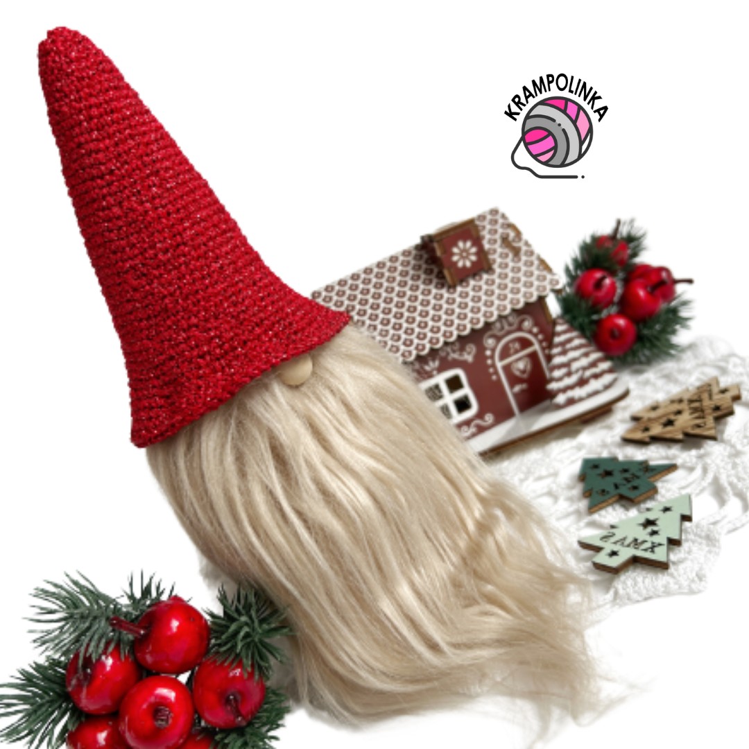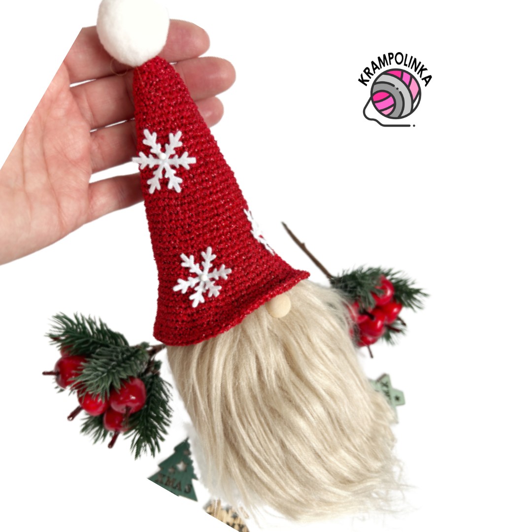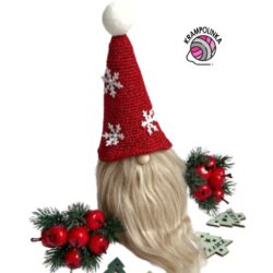 - Co se týče skřítka, tvoří ho tělo, které vyrobíme omotáním příze kolem kuželu o výšce 20 cm přízí Vlnika Daja. Dále budeme vyrábět háčkovanou čepici z příze Anchor Metallic. Na dozdobení skřítka použijeme vousy a půl nosík z Joom. Na dozdobení čepice jsem použila vločky a bambulku také z Joom. Skřítek bude krásná vánoční dekorace nebo milá pozornost pro kamarádku.