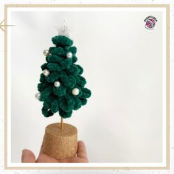 💡 TIP: Stromeček dozdobíme perličkami, které připevňujeme tavnou pistolí. Doporučuji přidat trochu hmoty z tavné pistole i na “kmínek” stromečku, aby jednotlivá patra neklouzala.