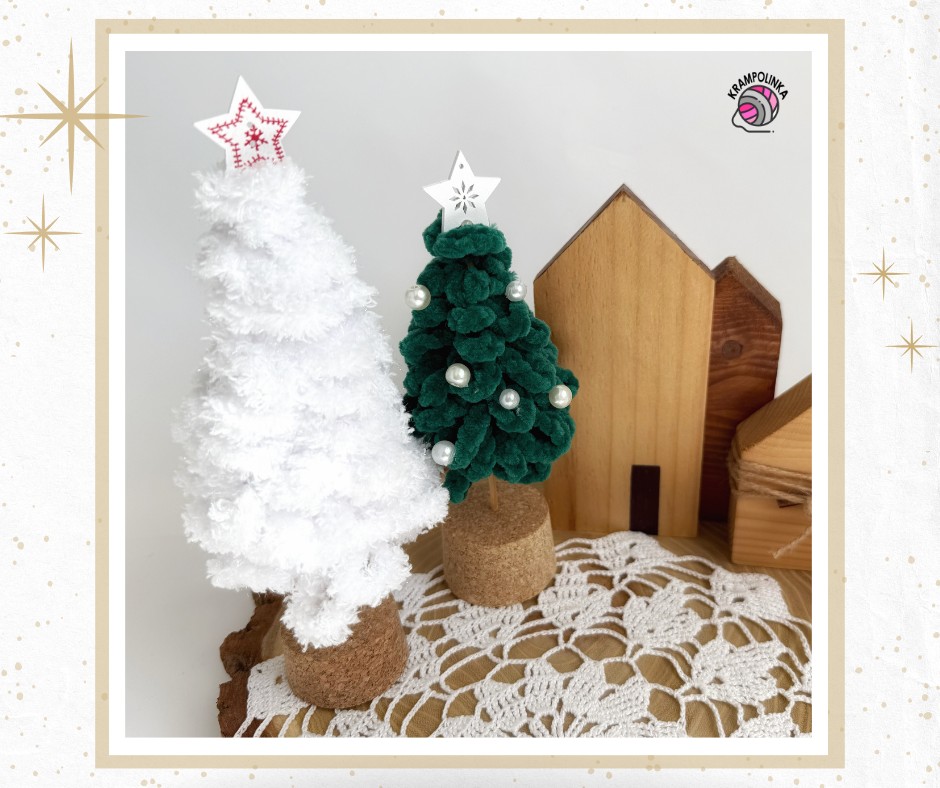 Rozměry: výška žinylkového stromečku je 20 cm, výška stromečku z Happy je 22 cm