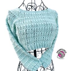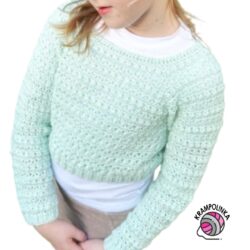 • Co se týče svetříku, budeme háčkovat od čtvercového ranglánového sedla po řadách tam a zpět. Končíme a začínáme háčkovat v rohu sedla. Po každé řadě sedla otočíme.  Tělo svetříku háčkujeme dokola, tj. nemáme žádný šev. Rukávy svetříku háčkujeme po řadách tam a zpět a po každé řadě otočíme. Vzniká šikmý šev, kolem kterého postupně rukáv zužujeme. Lemy tvoří přední a zadní reliéfní sloupky.