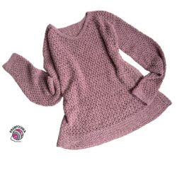 Výrobek nevěšíme na ramínko, ale skladujeme ho složený. Pro stejný vzhled doporučuji použít stejnou nebo podobně seskanou přízi, např. Scheepjes Twinkle. Svetřík pro tuto velikost je spíše obeplý. Doporučuji háčkovat větší panely.