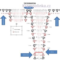 - Nákres vzoru topu – háčkujeme po řadách. Řadu ukončujeme ve středu oblouku