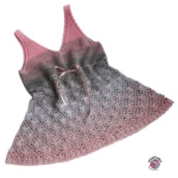 2. – 3. řada: Pomocí PO se přesuneme pod ŘO. 2 ŘO místo DS, DS-ŘO-2 DS pod ŘO z předchozí řady. Háčkujeme 2DS-ŘO-2DS pod ŘO po celém obvodu tuniky. Řadu končíme PO. V poslední řadě přízi ukončíme.