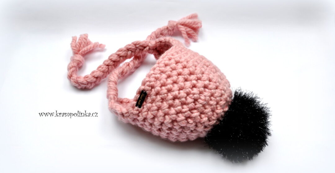 Celou čepičku obháčkujeme pomocí KS. Ve špičce/dolním středu klapičky děláme 2 KS do jednoho očka. Po dokončení si necháme volný konec v délce copánku (také zapleteme).
