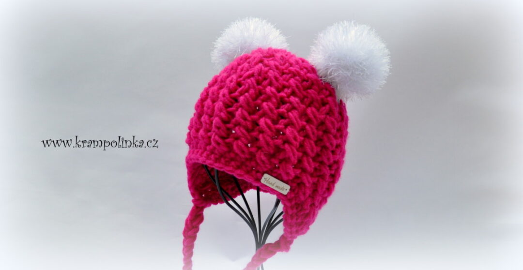 Celou ušanku obháčkujeme krátkými sloupky ve dvou- třech řadách, začínáme u kořene klapky, ve špičce háčkujeme 2 KS do jednoho místa. Před ukončením si necháme dostatečně volný konec, který zapleteme do šňůrek.