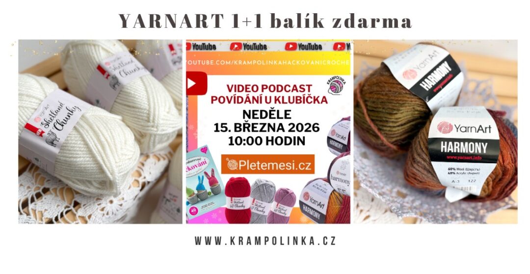 V nedělním podcastu Povídání u klubíčka #128 jsme se věnovali dvoum oblíbeným přízím značky YarnArt. Klubíčka jsou právě v akci u PletemeSi a k balíku klubíček získáte druhý balík úplně zdarma. Pojďte mrknout.